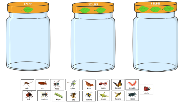 Lasa vārdus, vai nosaka kukaini pēc dotā attēla. Dala vārdu zilbēs.
