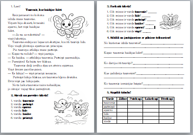 Kukaiņu piedzīvojumi – darba lapu komplekts 1.–2. klasei