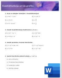 Darba lapa, 4 uzdevumi par kvadrātfunkciju un tās grafiku.