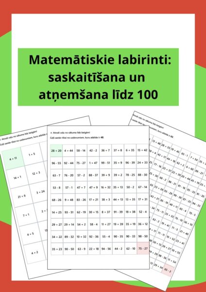 Labirinti: saskaitīšana un atņemšana līdz 100 (15lpp.)Labirinti: saskaitīšana un atņemšana līdz 100 (15lpp.)