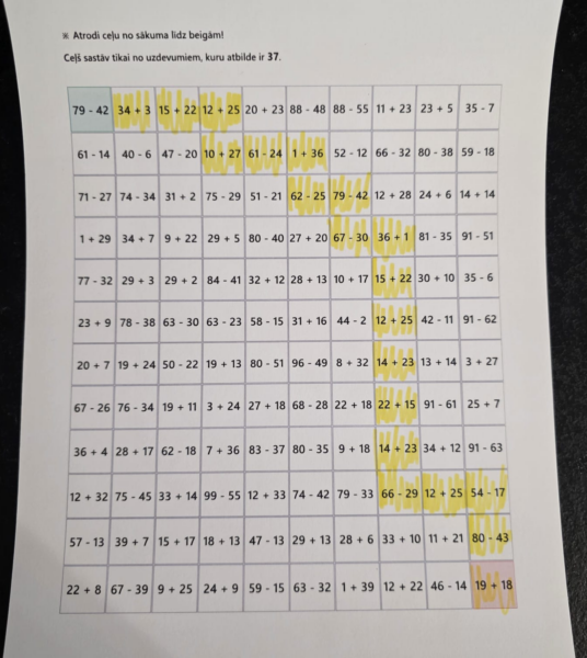Virzīties drīkst tikai pa rūtiņām, kuru atbildes atbilst dotajam skaitlim.