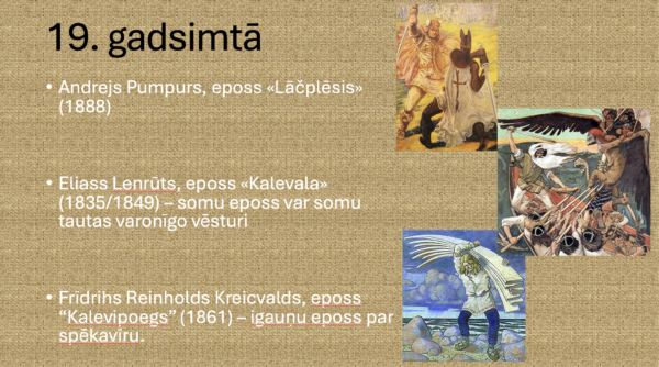 Kad 9. klases skolēni mācās par A.Pumpura eposu “Lāčplēsis”, daudz plašāku skatu uz to var sniegt, ja vismaz vienu mācību stundu veido ar starppriekšmetu saikni literatūrā un vēsturē. Šī prezentācija var kalpot par pamatu šādai stundai.