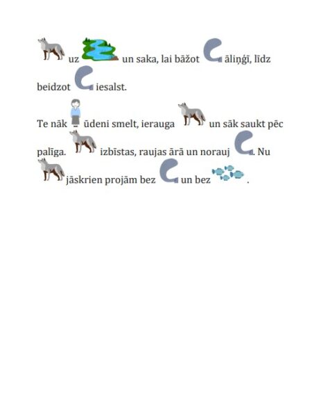Latviešu tautas pasaka “Lapsa māca vilku zvejot”. Šifrēta (t.i. vārdi aizstāti ar attēliem).