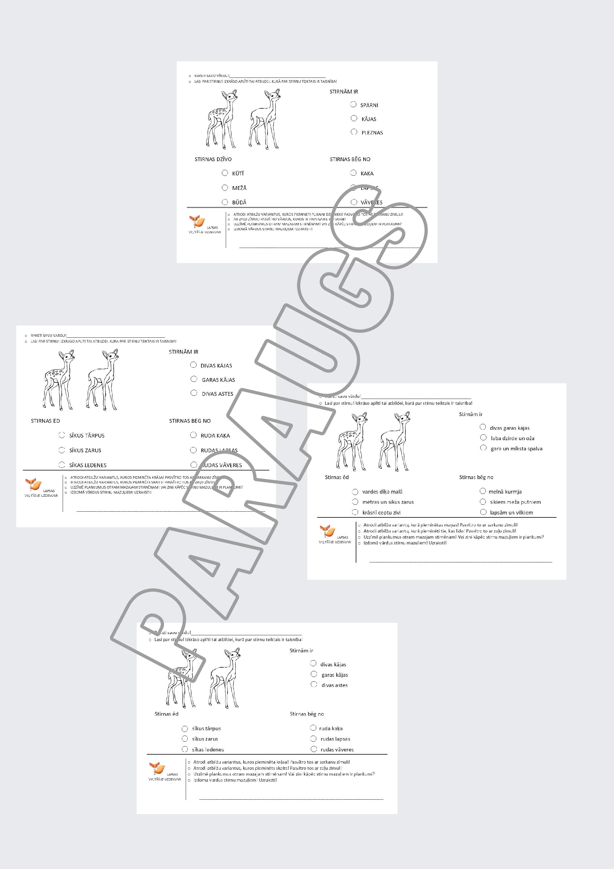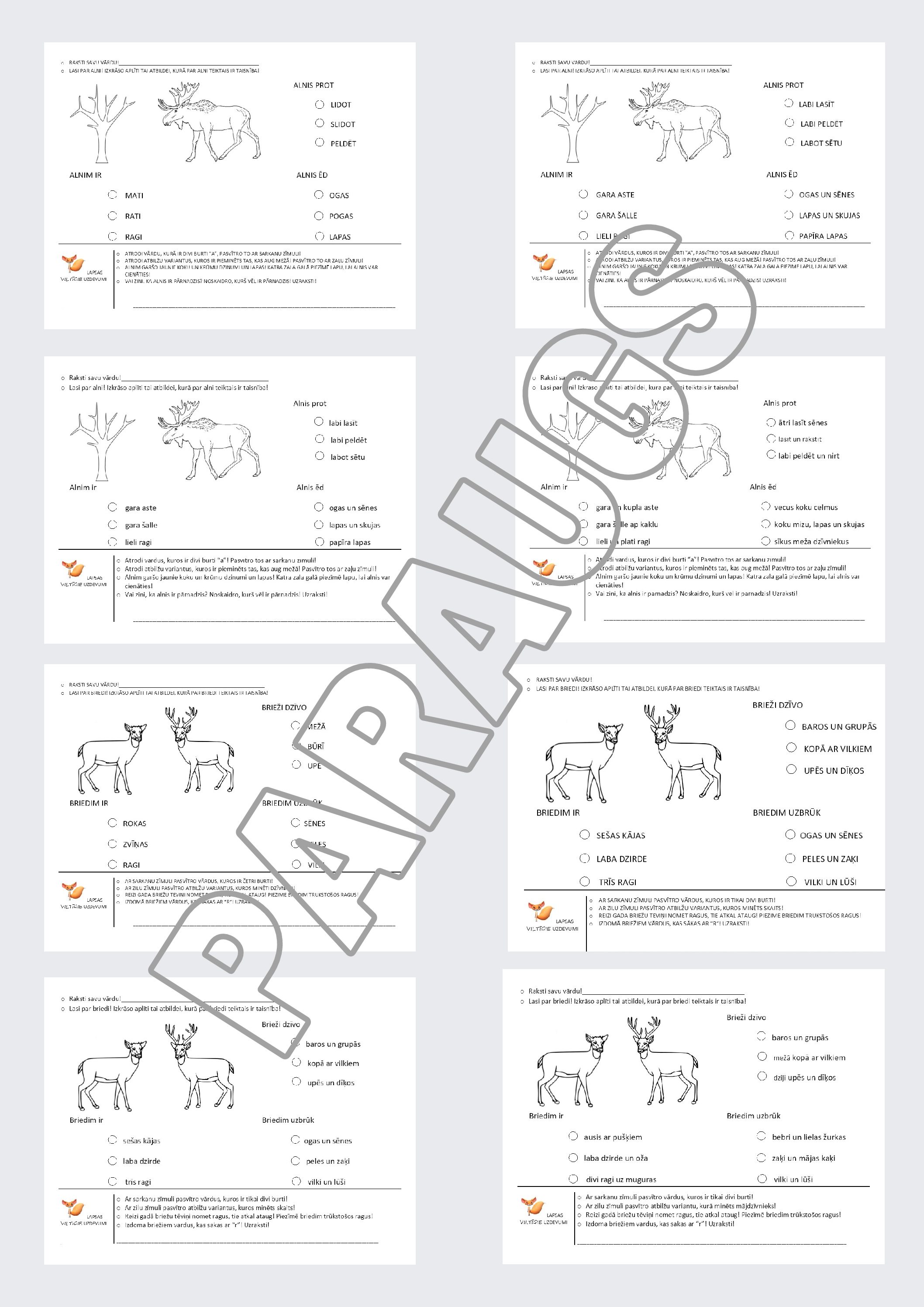 Darba lapas lasīšanai ar izpratni par TRIM meža dzīvniekiem: ALNI, BRIEDI, STIRNU.