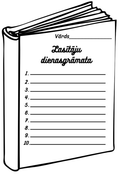 Lasītāju dienasgrāmata palīdzēs bērnam strukturēt izlasīto grāmatu sarakstu. Pirmajā lapā skolēns pieraksta izlasītās grāmatas nosaukumu, autoru. Otrajā lapā veic detalizētu aprakstu par grāmatu.