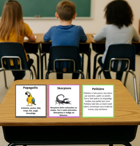 3️⃣ Izmantot garos aprakstus kā diktātus vai klausīšanās vingrinājumus.