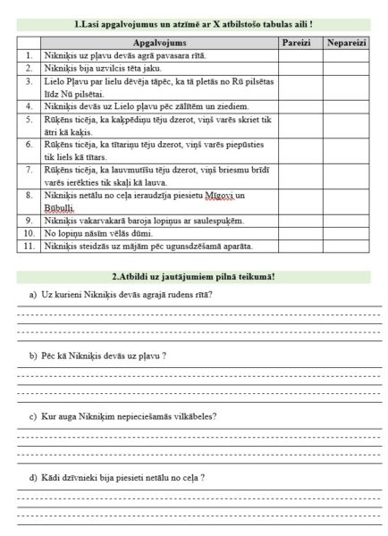 1. Lasa apgalvojumus par tekstu un atzīmē pareizi vai nepareizi !