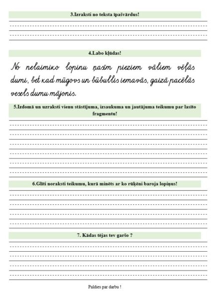 5.Par lasīto tekstu raksta stastījuma, jautājuma un izsaukuma teikumu !