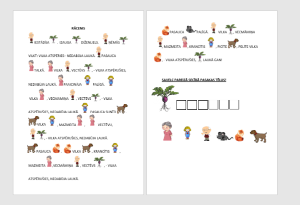 Lasītprasmes veicināšana. Pasaka par rāceni