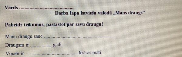 Veicot uzdevumu, skolēns pilnveidos prasmi uzrakstīt nepabeigtos teikumus,  izveidos domu karti, pastāstīs par savu draugu vai uzrakstīs īsu tekstu par savu draugu.