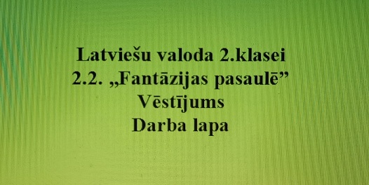 Materiālu paredzēts izmantot latviešu valodas stundās 2.klasē tēmas 2.2. „Fantāzijas pasaulē” ietvaros.