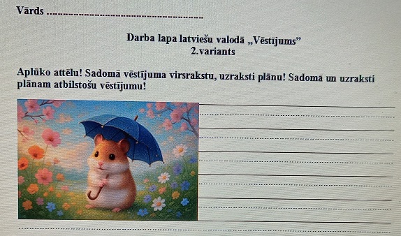 Veicot uzdevumu, skolēns aplūkos attēlu, izlasīs virsrakstu, sadomās un uzrakstīs vienkāršu plānu, uzrakstīs plānam un attēlam saturiski atbilstošu vēstījumu.