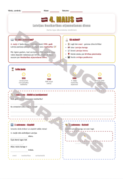 Darba lapa uzziņai par Latvijas Republikas Neatkarības atjaunošanas dienu.
