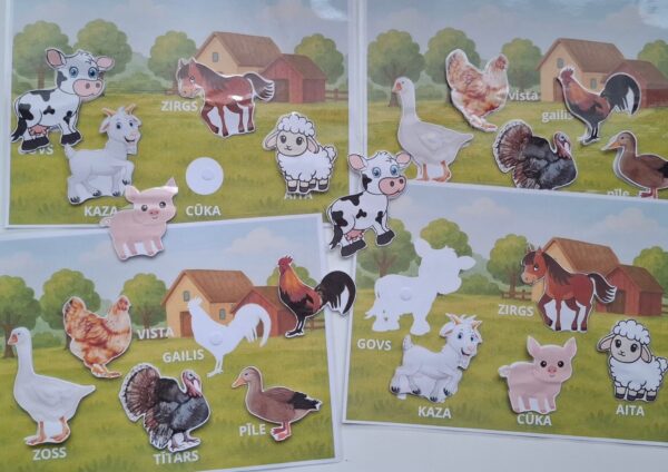 Plaši izmantojams materiāls gan individuālam, gan pāru darbam ar pieaugušo. Ērti veidojams materiāls ar Velcro pašlīmējošiem “punktiem”. Izmantojams materiāls savas lauku sētas veidošanai – patstāvīgi izgriežot mājdzīvniekus un mājputnus, līmējot atbilstošās vietās.
