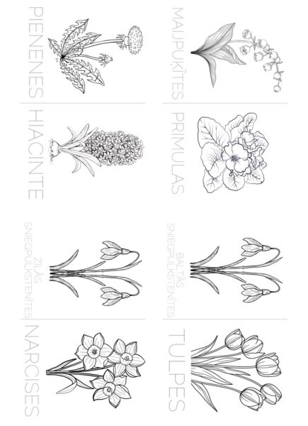 Lieldienu krāsojamie attēli + pavasara ziedi