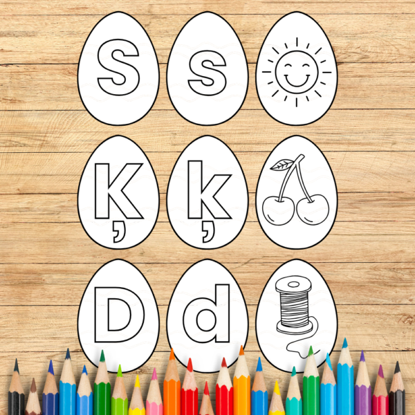 Mācību materiāls ar ļoti plašām izmantošanas iespējām, īpaši Lieldienu tematikā. Lielā un mazā burta atrašana, attiecīgo attēlu atrašana, dažādas grupēšanas spēles tikai no attēliem.