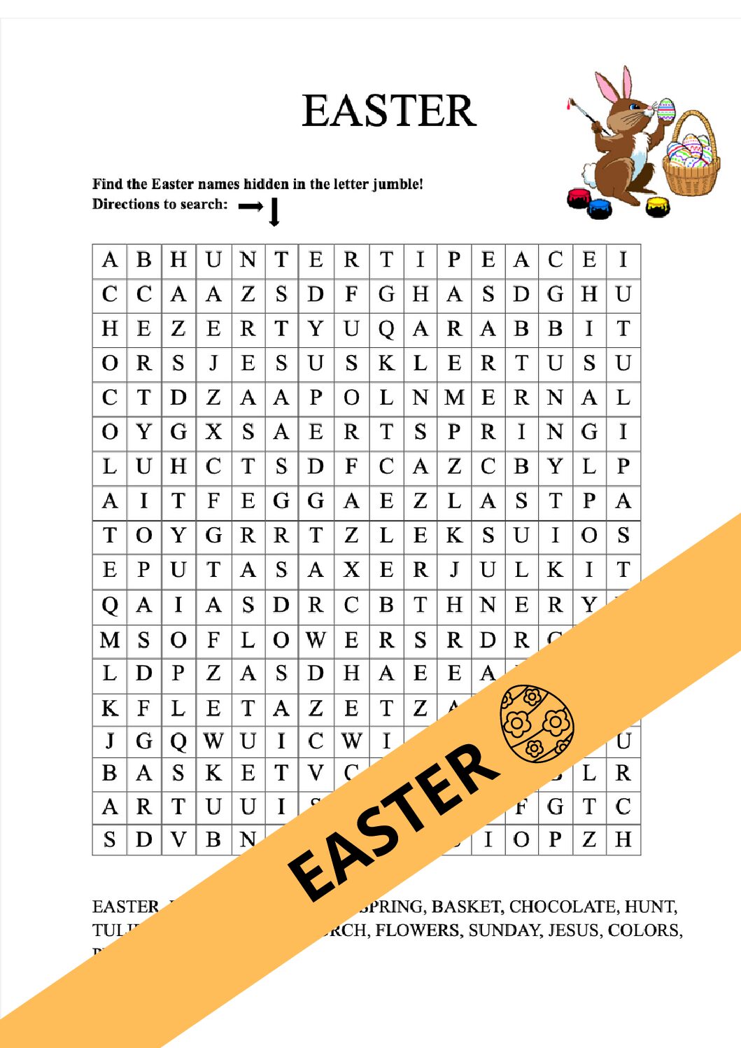 Lieldienu burtu jūklis angļu valodā ir izklaidējoša un radoša aktivitāte bērniem. Jūklī ir sajaukti burti, un uzdevums ir atrast slēptos Lieldienu vārdus.