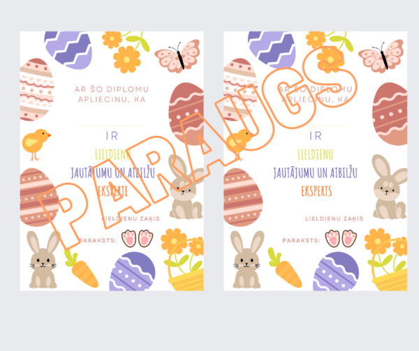 >27 attēlu kārtis Lieldienu un pavasara tematikā. Tās var izmantot uzdodot aprakstošo jautājumu, lai draugi uzmin, kas attēlots uz kārts. Var uzdot jautājumu, iesaistot teikumā vārdu, kas rakstīts uz kārts. Piemēram: – Vai zaķim garšo burkāns? Vai burkāns ir dārzenis? Kam garšo burkāns? Vai burkānu liek zupā?/Burkāna attēls/ Arī šeit bērni var darboties pāros vai komandās, izdomājot vairākus jautājumu variantus.