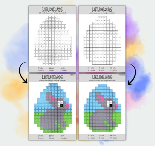 - Vienkāršais variants – iekrāsot kvadrātus pēc dotajām norādēm (simboliem)