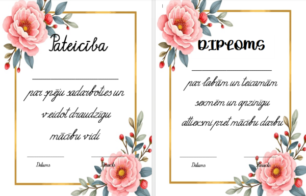 🎓 30 lappušu MATERIĀLS ar skaistiem diplomiem, atzinībām un pateicībām – skolēniem un vecākiem!