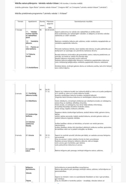 Izmantota mācību priekšmetu programma “Latviešu valoda 1.-9.klasei”, 2023.gadā izstrādātā. Plāns ir valodas stundām, nav klāt literatūra.