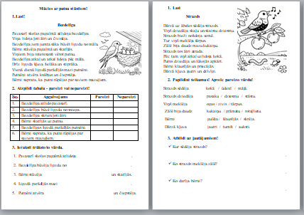 Mācies ar putnu stāstiem!- darba lapa 1.kl.Mācies ar putnu stāstiem!- darba lapa 1.kl.