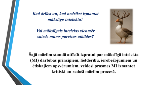 Mācību prezentācija skolēniem “Mākslīgais intelekts (MI) un tā jēgpilna izmantošana mācību