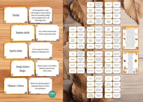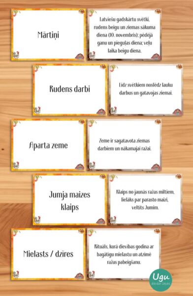 jēdzienu kartītes (piem., Mārtiņi, Rudens darbi, Jumja maizes klaips, Mielasts/dzīres u.c.);