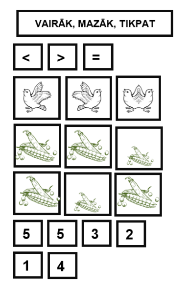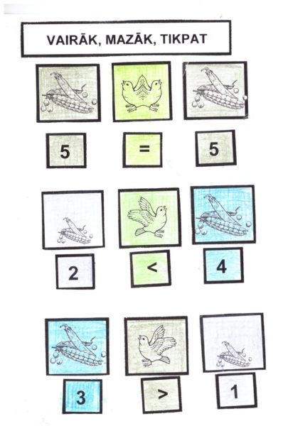 – vairāk, mazāk, tikpat (atgādne sajauktā formā);