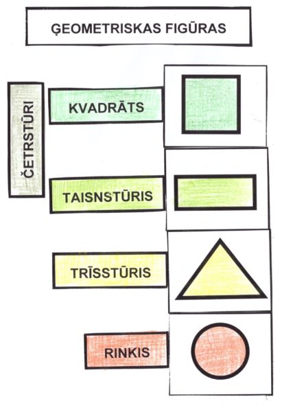 – ģeometriskas figūras (atgādne sajauktā formā);