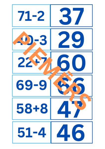 Matemātikas Domino – Saskaitīšana un Atņemšana līdz 100