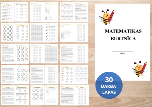 - 7 lapas – teksta uzdevumi (ar 1 un 2 darbībām)