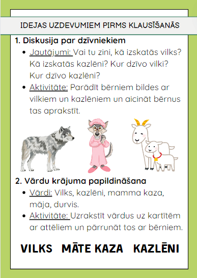 Metodiskais materiāls skolotājiem pēc pasakas ”Vilks un septiņi kazlēni”: