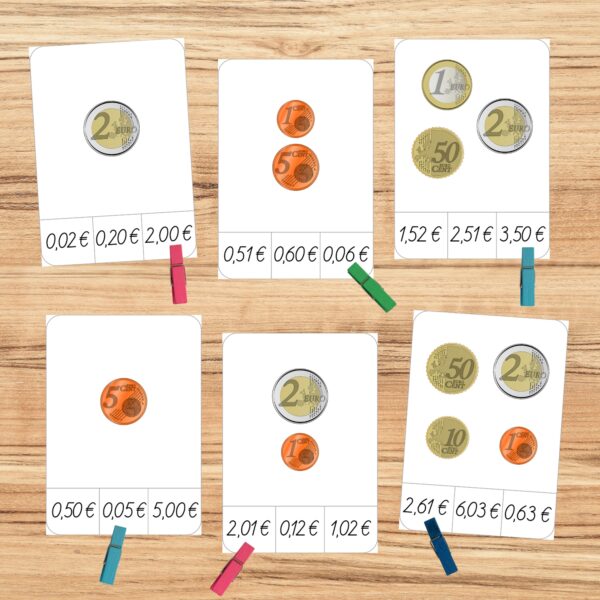 Iekļauti dažādi uzdevumi, sākot no vienas monētas līdz pat vairāku eiro summām.