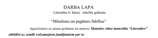 Mūsdienu un pagātnes līdzības DL literatūrā 6. klasei. Darbs balstīts uz videomateriālu.  Darba apjoms: 1 lpp.