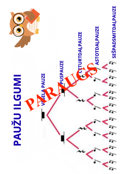Atgādnes mūzikai – paužu ilgumi, nošu ilgumi, nošu un paužu ilgumi.