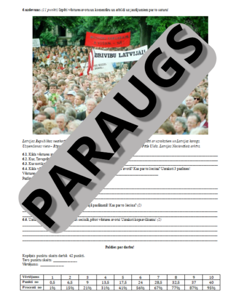Pārbaudes darbs uz 2 lappusēm. Ir iekļauti 6 dažāda grūtības līmeņa uzdevumi ar pievienoto klāt vērtēšanas skalu un vērtēšanas KRITĒRIJIEM.