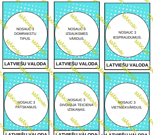 Latviešu valodas un literatūras kartītes atbilst 8. un 9. klases skolēnu zināšanām.