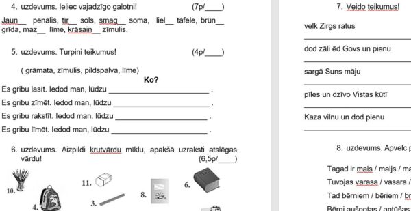 ievēro pieturzīmes un lielos sākuma burtus, pasvītro norādītos vārdus.