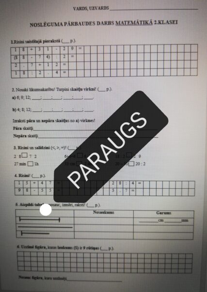 Noslēguma pārbaudes darbs matemātikā 2.klasei.