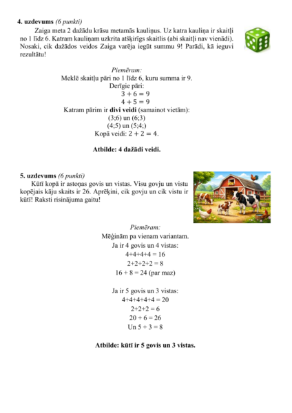 Rediģējamā doc un drukājamā pdf formātā, 5 uzdevumi (2 A4 formāta lapas), doti vertēšanas kritēriji , STAP (1 A4) un iespējamās skolēnu sniegtās atbildes (2 A4).