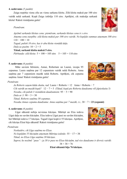 Rediģējamā doc un drukājamā pdf formātā, 6 uzdevumi (2 A4 formāta lapas), doti vertēšanas kritēriji , STAP (1 A4) un iespējamās skolēnu sniegtās atbildes (2 A4).