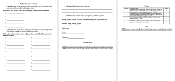 Pārbaudes darbs latviešu valodā 2.klasei. Radniecīgi vārdi.