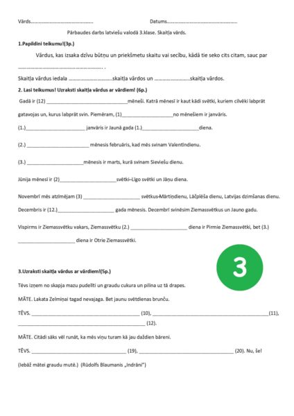 Pārbaudes darbs latviešu valodā 3.klase. Skaitļa vārds.