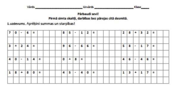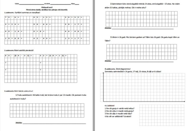 Darba lapā ir sagatavoti 7 uzdevumi. Paredzēti 2.klašu skolēniem vai atkārtojot 3.klasē.