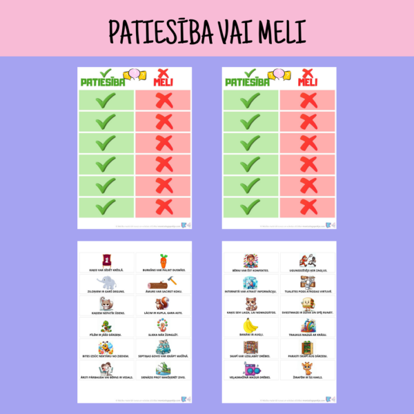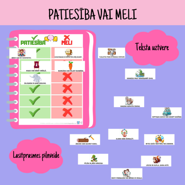 • Pievieno to atbilstošajā ailē – patiesība vai meli.