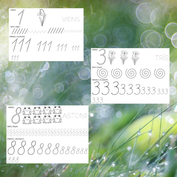 1-10, krāso, seko līnijai, pārvelc un raksti.