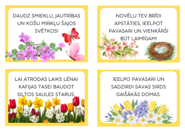 Pavasarīgas un Lieldienu noskaņas vēlējumu kartītes!