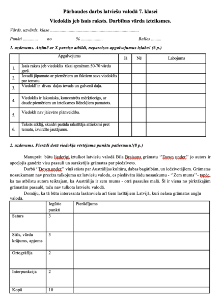 Pārbaudes darbs latviešu valodā 7. klasei.