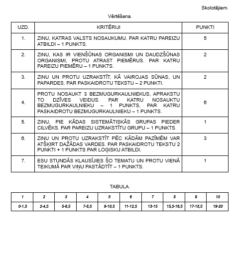 PIEDĀVĀJU PĀRBAUDES DARBU 7.KLASEI PĒC TEMATA – KĀ TIEK GURPĒTI ORGANISMI. PD+SKOLOTĀJA LAPA.